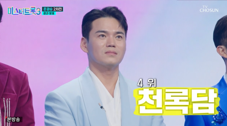 3위를 차지한 김용빈은 고복수의 ‘타향살이’를 열창하며 정통 트로트를 지키겠다는 강한 의지를 보였다.
