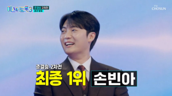 손빈아는 배호의 ‘마지막 잎새’를 선곡해 감동적인 무대를 선보이며 마스터 점수 1489점, 관객 점수 263점을 받아 총 1752점으로 1위를 차지했다.