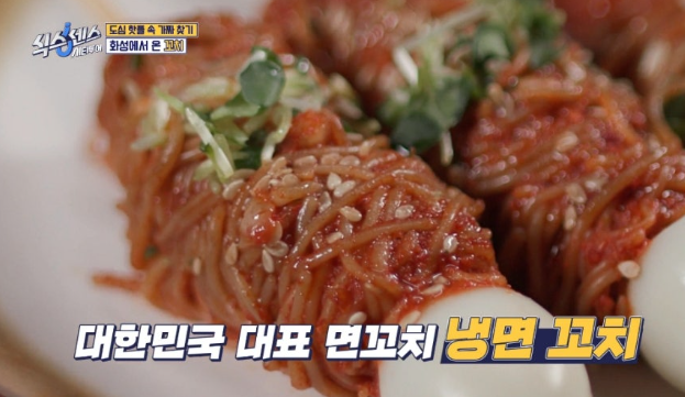 초밥 꼬치, 닭발 꼬치 등 다양한 꼬치 요리를 개발한 이곳에서 가장 눈길을 끄는 메뉴는 바로 냉면 꼬치입니다.