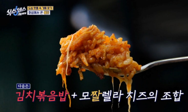 • 김치볶음밥과 모짜렐라 치즈, 바삭한 통닭의 조합