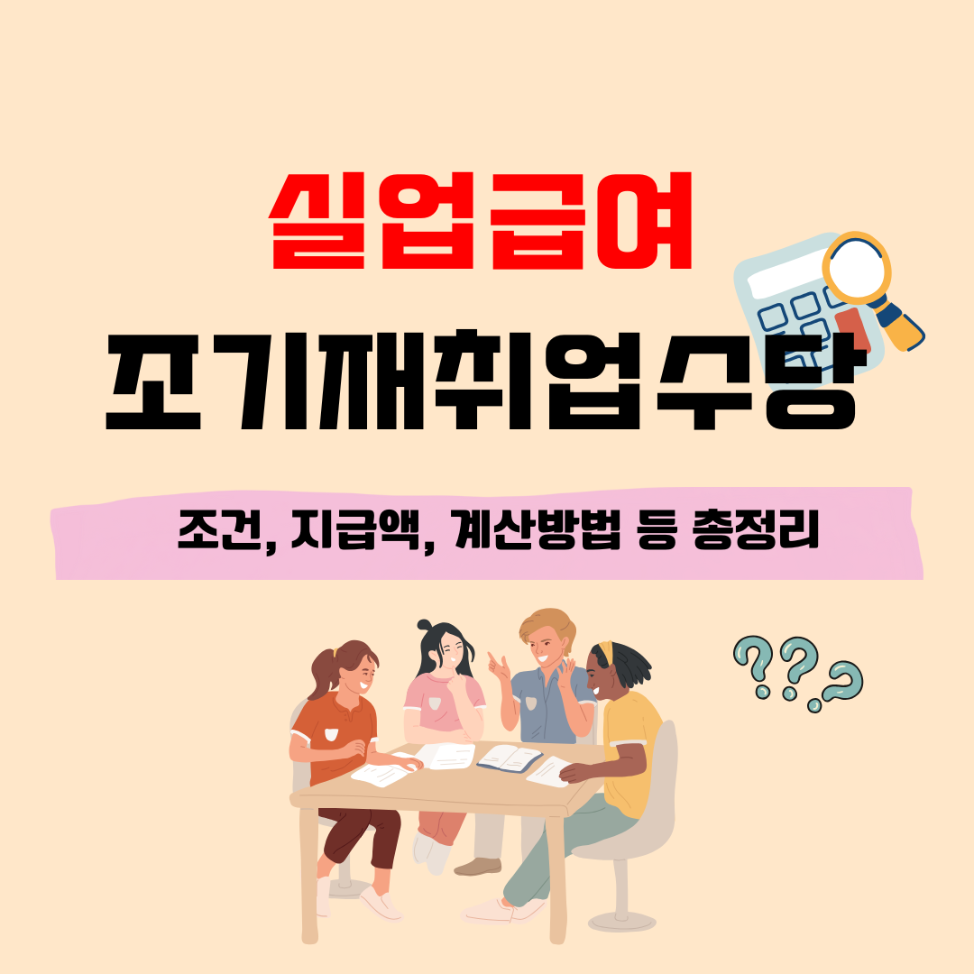 조기취업수당은 실업급여 수급 중 조기에 재취업한 사람에게 지급되는 지원금입니다.