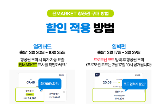 ✔ 항공권 검색 시 ‘진MARKET’ 운임 표시 확인