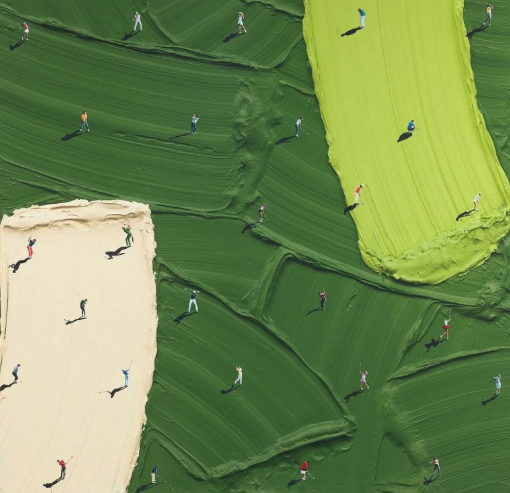 골프, 테니스 등 스포츠를 즐기는 순간을 포착하여 인간과 자연의 조화를 감각적으로 표현한 작품들을 만날 수 있습니다.